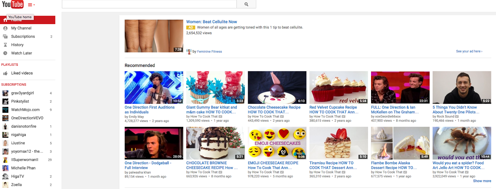 Youtube is the site to go to for all kinds of videos. There have been many changes though to how it looks. In the present format, there are not only videos from the people I am subscribed to, but also recommended Youtubers who have similar content. The colors the links were in the 2006 blue, and at the top. This was handy because they were easy to find. The present day format has the links to the side. The videos in the 2006 format are not labeled as recommendations. I think that the present version is more user friendly and more organized than the 2006 version.